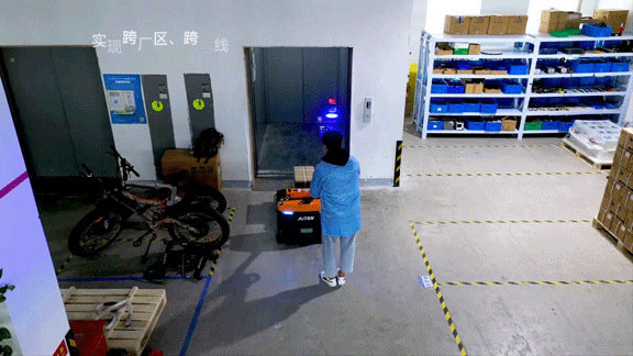 jinnianhui自主研发的智能调度系统提供了多种接口,通过多种信息协议,支持与MES(生产信息化管理系统)、WMS(仓储管理系统)对接,实现数据可视化,做到数据实时更新、检测,保证物流每个环节精准进行;还可对接原有硬件设备(自动门、电梯等),实现设备互联互通。聚云新能源厂区位于高层,“小搬”可对接电梯,实现跨楼层、跨产线的物料转运。
